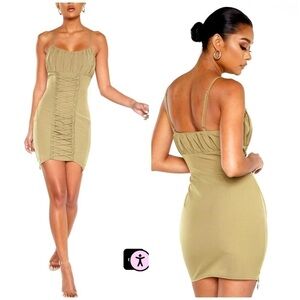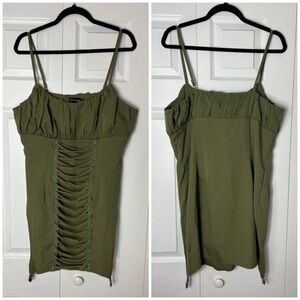 Pretty Little Thing Olive Khaki Green Ruched Lace Up Suspender Bodycon Dress 12