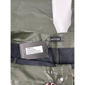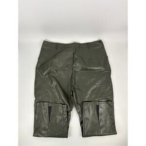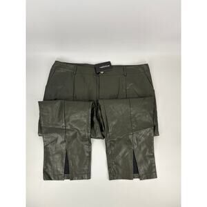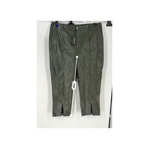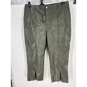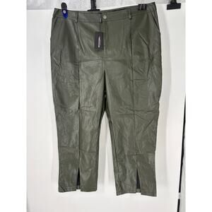 Faux leather olive green colored PLT pants. New with tags attached. Button and zipper closure at the front. Has a slit in the front of the pant leg on both sides. Plus sized 4x