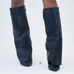 leather black mid knee heeled boots from Pretty Little Thing in a size 9 , brand new never yet worn.