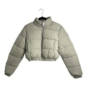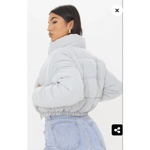 Pretty Little Thing Peach Skin Cropped Bubble Puffer Jacket Gray Size 4 NWT