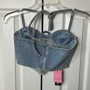 Pretty Little Thing Petite Light Blue Wash Denim Seam Detail Corset Top 00