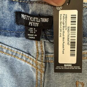 Pretty Little Thing Petite Light Blue Wash Mini Pocket Denim Skirt Sz 0 NWT