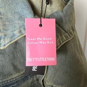 Pretty Little Thing Petite Vintage Wash Denim Cut Out Waist Jumpsuit 6