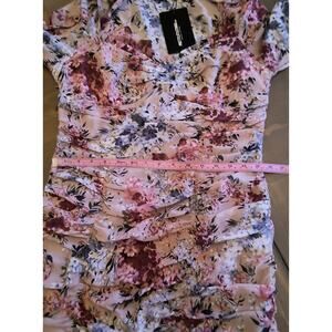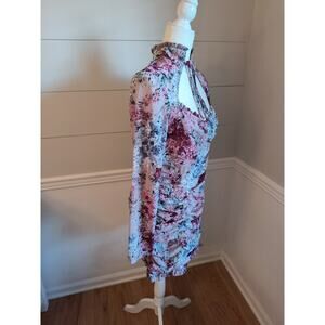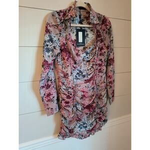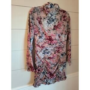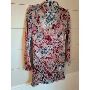 Pretty Little Thing Pink Floral Mini Dress Women's Sz 8 Long Sleeve Lined Ruched