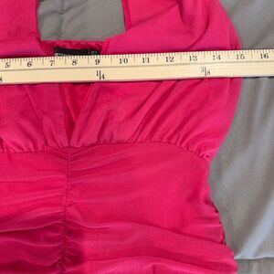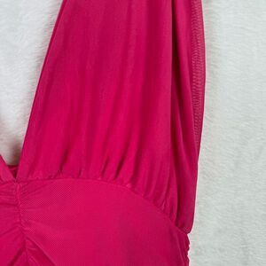 Pretty Little Thing Pink Mesh Extreme Plunge Ruched Bodycon Dress Halter Size 4