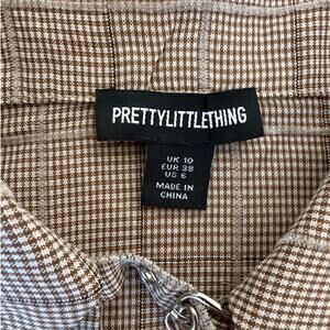 Pretty Little Thing - Plaid Tie Front Flare Sleeve Top in Beige