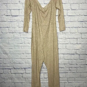 Pretty Little Thing Plus Oatmeal Rib Knitted Bardot Jumpsuit