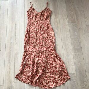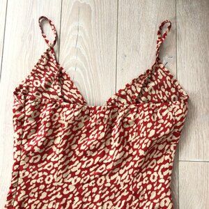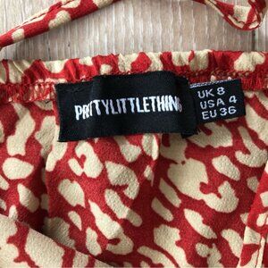 Pretty Little Thing Red Leopard Frill Hem Midi Dress Size 4