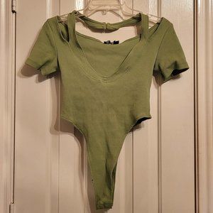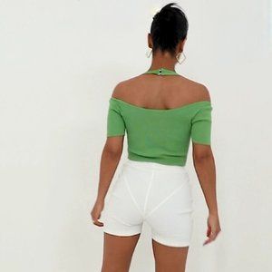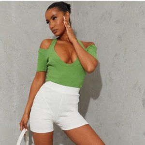 Pretty Little Thing Rib Halter Detail Short Sleeve Bodysuit