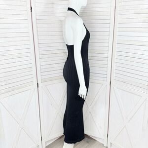 Pretty Little Thing Ribbed Knit Halter Neck Open Back Maxi Dress Black XS