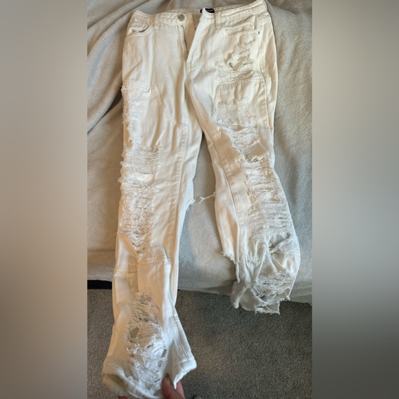 They are ripped front and back, no skin would show there is material in between rips and skin