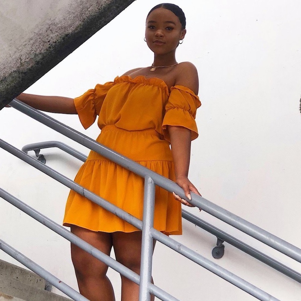 Top has been worn a few times and has some discoloring on the armpit of the sleeve but isn’t visible