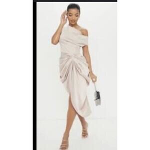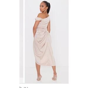 Pretty Little Thing Satin Off The Shoulder Draped Dress Nwt 78$ formal 10 fall