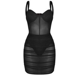 Pretty Little Thing Shape Black Mesh Binding Cup Detail Bodycon Dress, NWT, Sz.