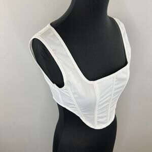 Pretty Little Thing Shape White Square Neck Zip Back Woven Corset Crop Top Sz 2