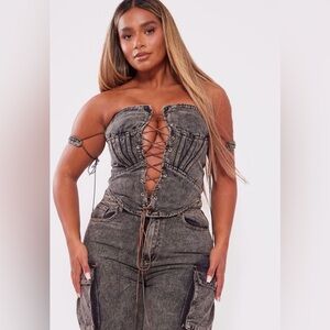Pretty Little Thing Stylish Lace-Up Denim Corset Top