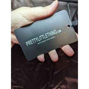 Pretty Little Thing Tall Women's Size 8 Brown Silky Long Sleeve Pajama Blouse