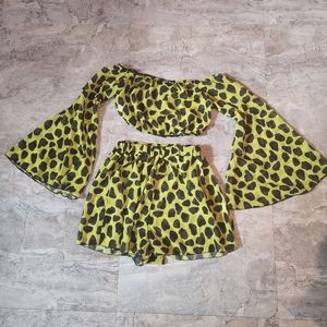 Pretty Little Thing Two Piece Yellow Cheetah Print Beach Set size 4/6