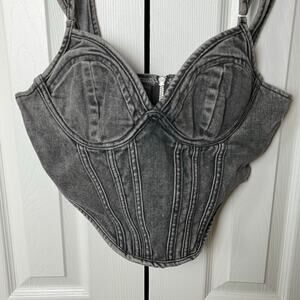 Pretty Little Thing Washed Gray Dip Hem Bust Cup Denim Corset 6