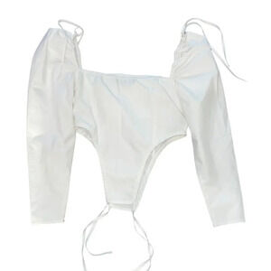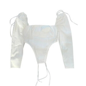 PrettyLittleThing | White Cut Out Ruched Detail Long Sleeve Blouse Size 4