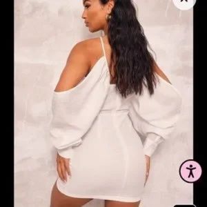 Pretty Little Thing, White Linen batwing sleeve bodycon dress
