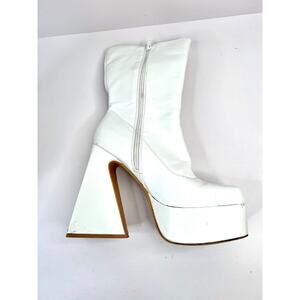 Pretty Little Thing White Platform Boots Size 7 Chunky Heels Square Toe Zip