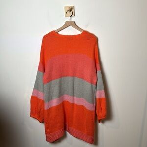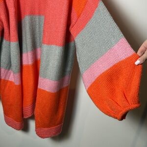 Pretty Little Thing Women’s Long Oversized Cardigan Sweater Balloon sleeve Multicolor Stripe Orange/gray/pink size S