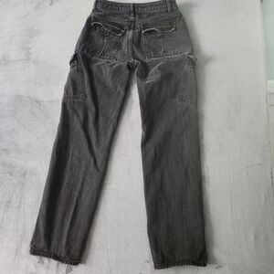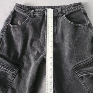 Pretty Little Thing Womens Jeans Size 4 Baggy Black Cargo Pockets Straight Leg