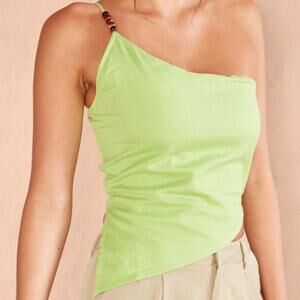Pretty Little Thing Women's Lime One Shoulder Strappy Top Size 4