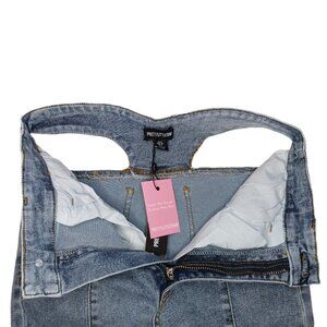 Pretty Little Thing Womens Size 4 Jeans Vintage Wash Cut Out Stretch Waistband