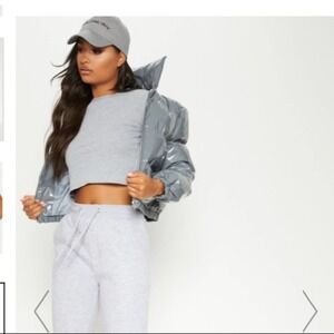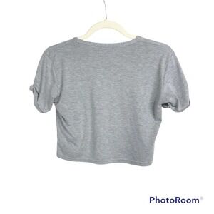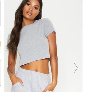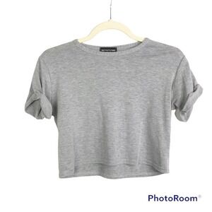 Pretty Little Thing basic grey rolled sleeve crop top size 4