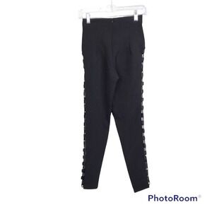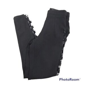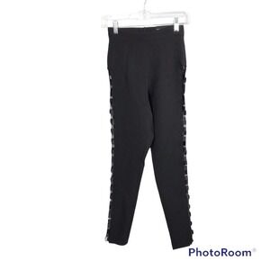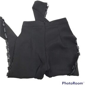 PrettyLittleThing Black cut out pants. High rise style. Black cut out sides on both legs. Faux leather like panels for the cut outs. Back zip closure.