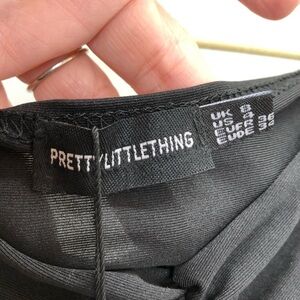 Pretty Little Thing black slinky sheer organza puff sleeve Bardot crop top