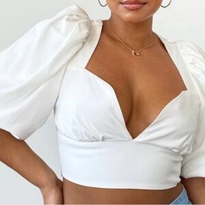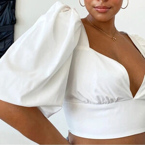 Pretty Little Thing plus white woven puff sleeve structured crop top, size 20