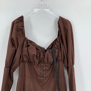 Pretty Little Thing puff sleeve lace-up waist jumpsuit chocolate brown new 12