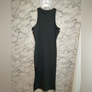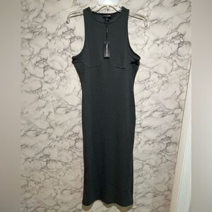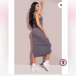 Enter the new season in style with this midi dress. Featuring a charcoal hue material with a racer neck design, cup detail and a midi length, we're in love. Keep it casual and just add kicks, an oversized shirt and a cap to complete the look.
