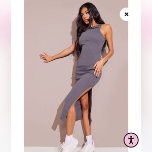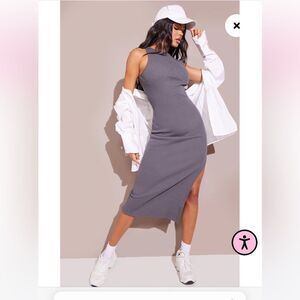 Pretty Little Thing Charcoal Cup Detail Racer Split Midi Dress