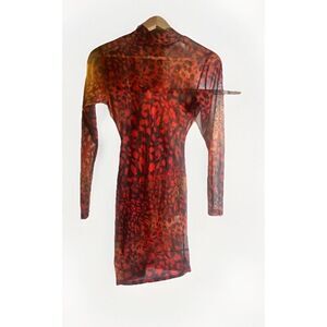 Pretty Little Thing Red Leopard Dress Sheer Long Sleeve Size 6 Halloween. Ii