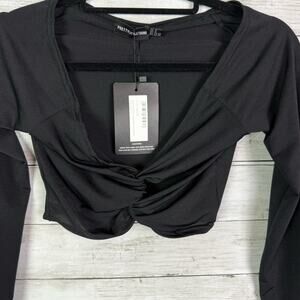 Pretty Little Things Black Slinky Ruched Front Long Sleeve Top Size 10