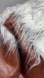 Stylish brown faux leather coat featuring luxurious white fur trim. Perfect for a chic, warm look. More beautiful in person.