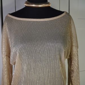 Shimmery Gold Sheer top or dress from Pretty Little Things. Perfect for a holiday party. Size 10.