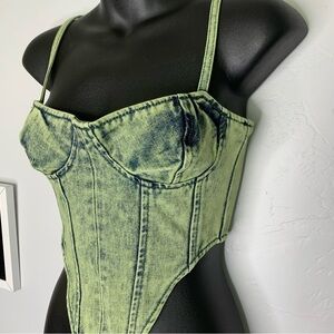 Pretty Little Things Green Dipped Hem Denim Corset Top Size 0