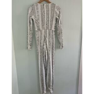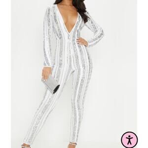 Pretty Little Things Sequin Stripe Mesh Jumpsuit