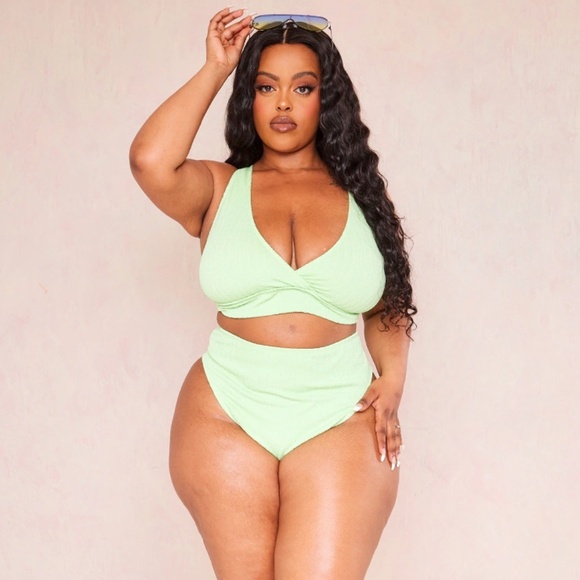 Pretty Little Things Lime Textured Bikini Top NWT Size 26 (US)