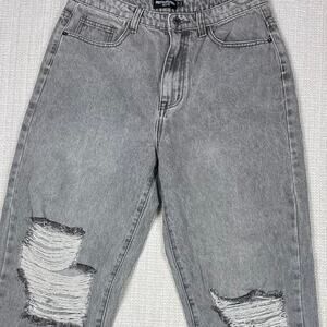 Pretty Little Things Petite Gray Distressed Mom Jeans Size 8