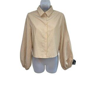 Pretty Little Things Sand Woven Open Back Tie Long Sleeve Shirt Size 4