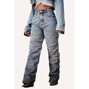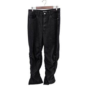 Pretty Little Things Womens Black Jeans Sz 10 Ruched Straight Leg High Rise NEW