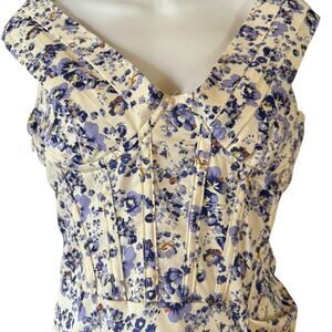 Pretty Little Things Womens Size 6 Ivory & Purple Floral Off Shoulder Dress