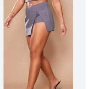 Pretty Little Things gray woven side slit mini skirt skort size 6