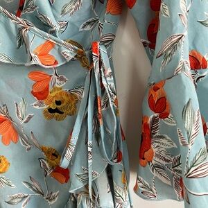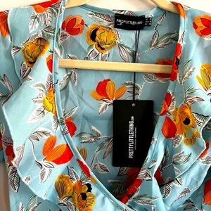 Pretty Little Things women’s NWT Turquoise Floral Printed Frill true Wrap Dress4